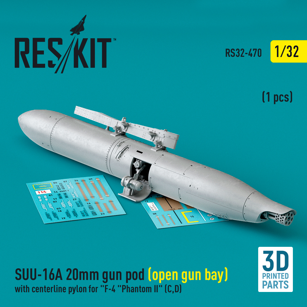 RESKIT - 1/32 SUU-16A 20mm gun pod for opened with centerline pylon