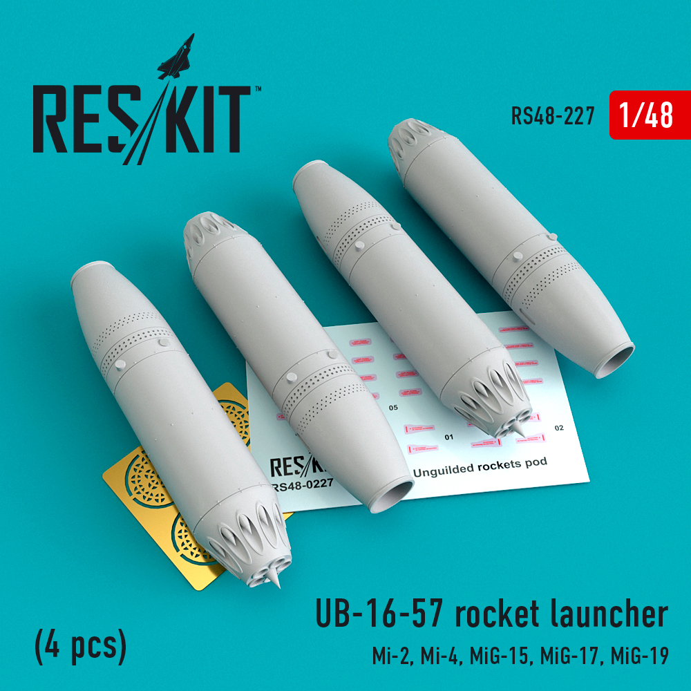 ResKit - 1/48 UB-16-57 rocket launcher (4 pcs) Mil Mi-2, Mi-4, Mikoyan MiG-15, MiG-17, MiG-19 (for Aeroplast, Bronco, Smer, Trumpeter and Tamiya kits)