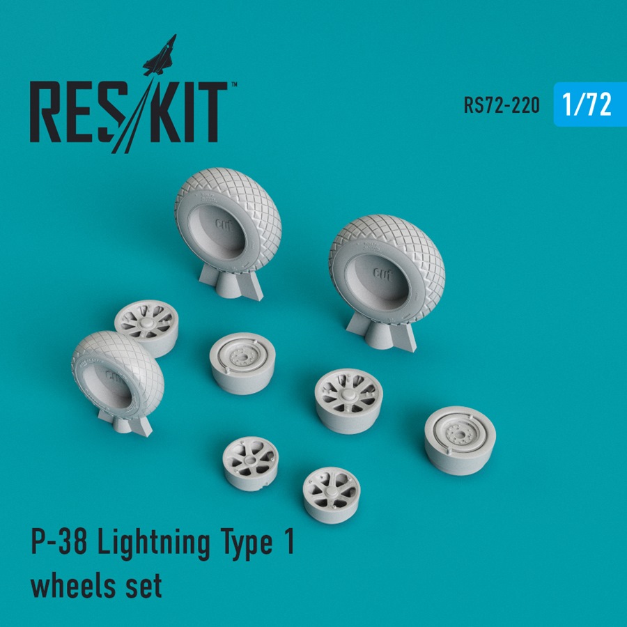 ResKit - 1/72 Lockheed P-38 Lightning Type 1 wheels set (for Academy, Airfix, Frog, Hasegawa, Hobby Boss, Italeri, Matchbox, Mpm Limited, Revell and RS)