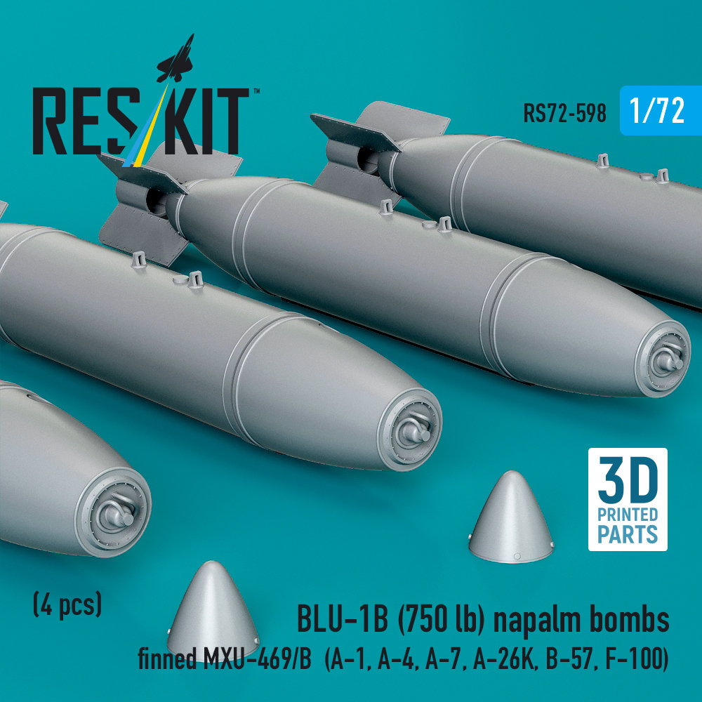 RESKIT - 1/72 BLU-1B 750 lbs napalm bombs MXU-469/B 4x