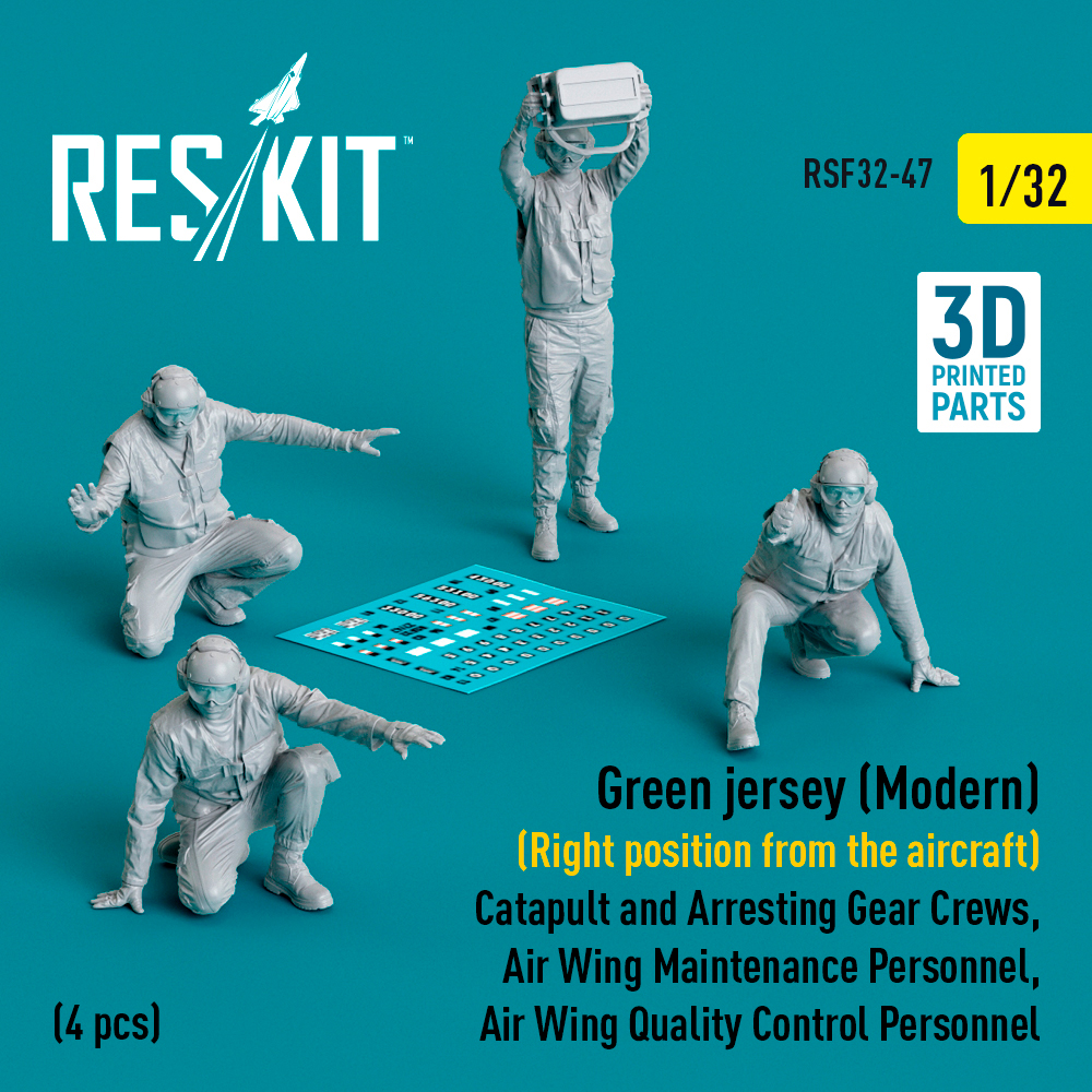 ResKit - 1/32 Green jersey (Modern) (Right position from the aircraft) Catapult and Arresting Gear Crews, Air Wing Maintenance Personnel, Air Wing Quality Control Personnel (4 pcs) (3D-Printed)