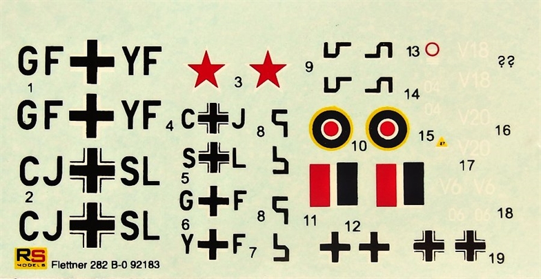 RS Models - 1/72 Flettner Fl 282B-0 The innovative Flettner Fl 282 was one of the first operational helicopter that was used on board of ships. Being the successor of the Flettner Fl 265 which first flew in May 1939, the Flettner 282 was only build in small numbers. The prototypes were build in different variants, one or two seater, closed or open cockpit.In 1941/1942 the Kriegsmarine used a Fl 282 for tests on board of the Cl K?ln . With a landing platform mounted on turret Bruno, several operational patterns were successfully tested. 32 preproduction aircraft were delivered, and three were taken home as war booty by Russia and the United States.