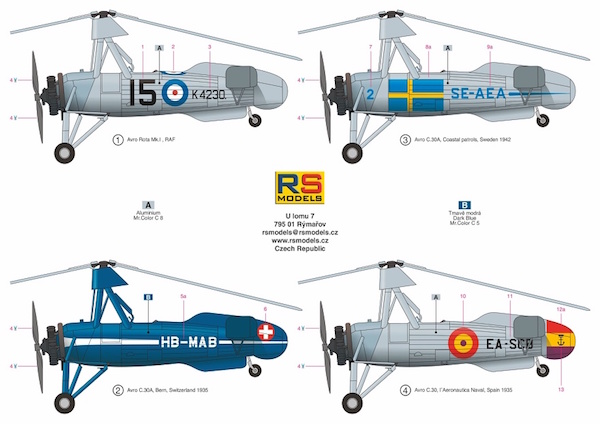 RS Models - 1/72 Avro Rota Mk.I/C.30A Decals RAF, Sweden, Switzerland and Spain