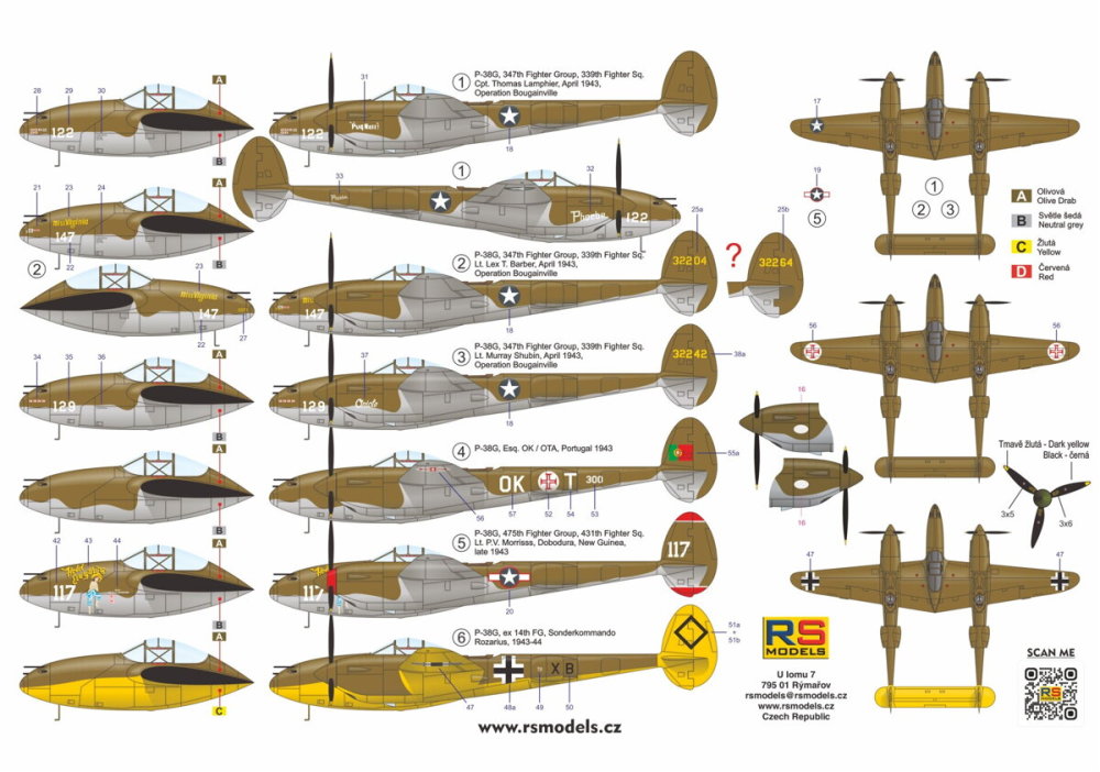 RS Models - 1/72 Lockheed P-38G Lightning 6 decal v. for USA, Portugal, Luftwaffe