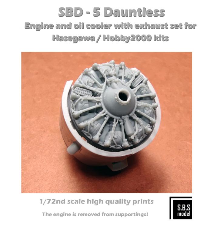 SBS Model - 1/72 Douglas SBD-5 Dauntless engine, oil cooler and exhaust set (3d-printed) (for Hasegawa and Hobby 2000 kits)