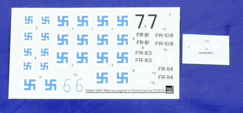 SBS MODEL - 1/72 Decal Fokker DXXI Mercury in Finnish service