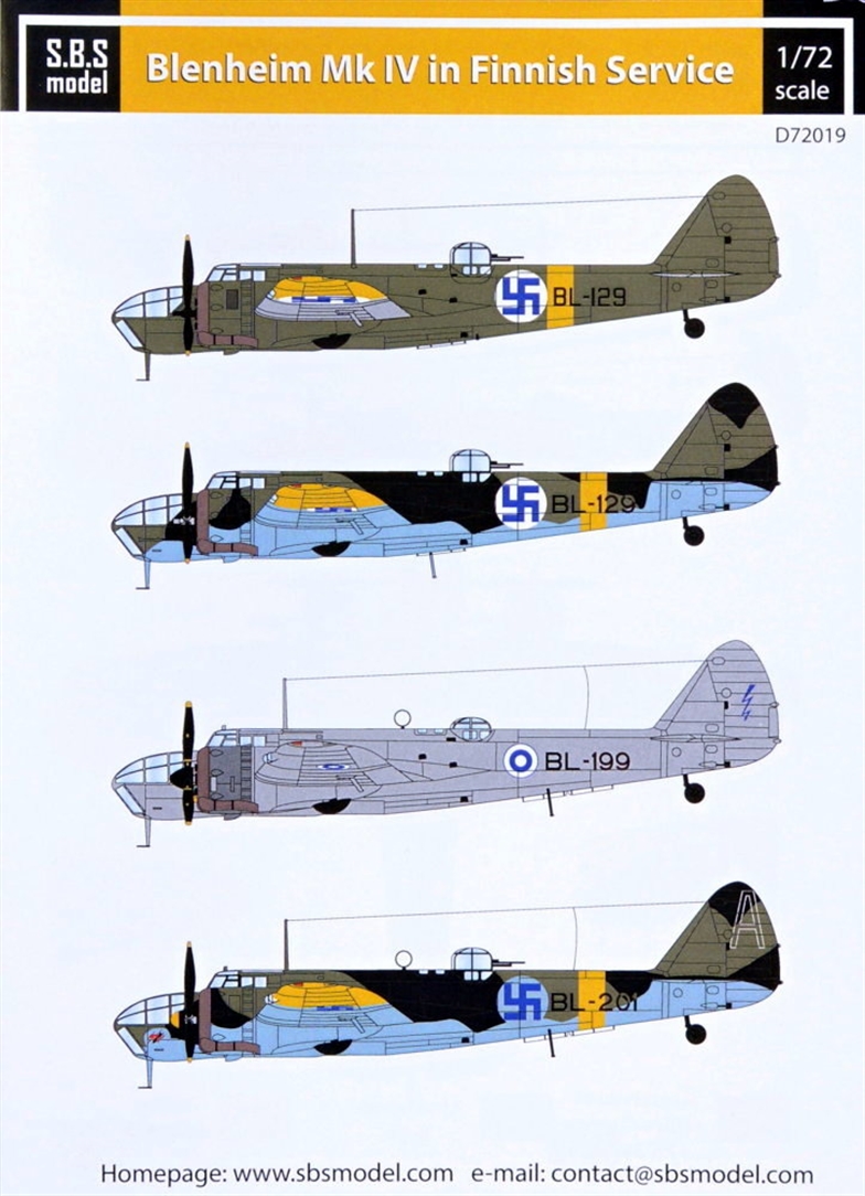 SBS MODEL - 1/72 Decal Blenheim Mk.IV in Finnish service