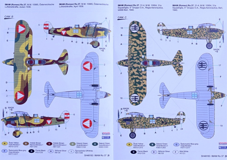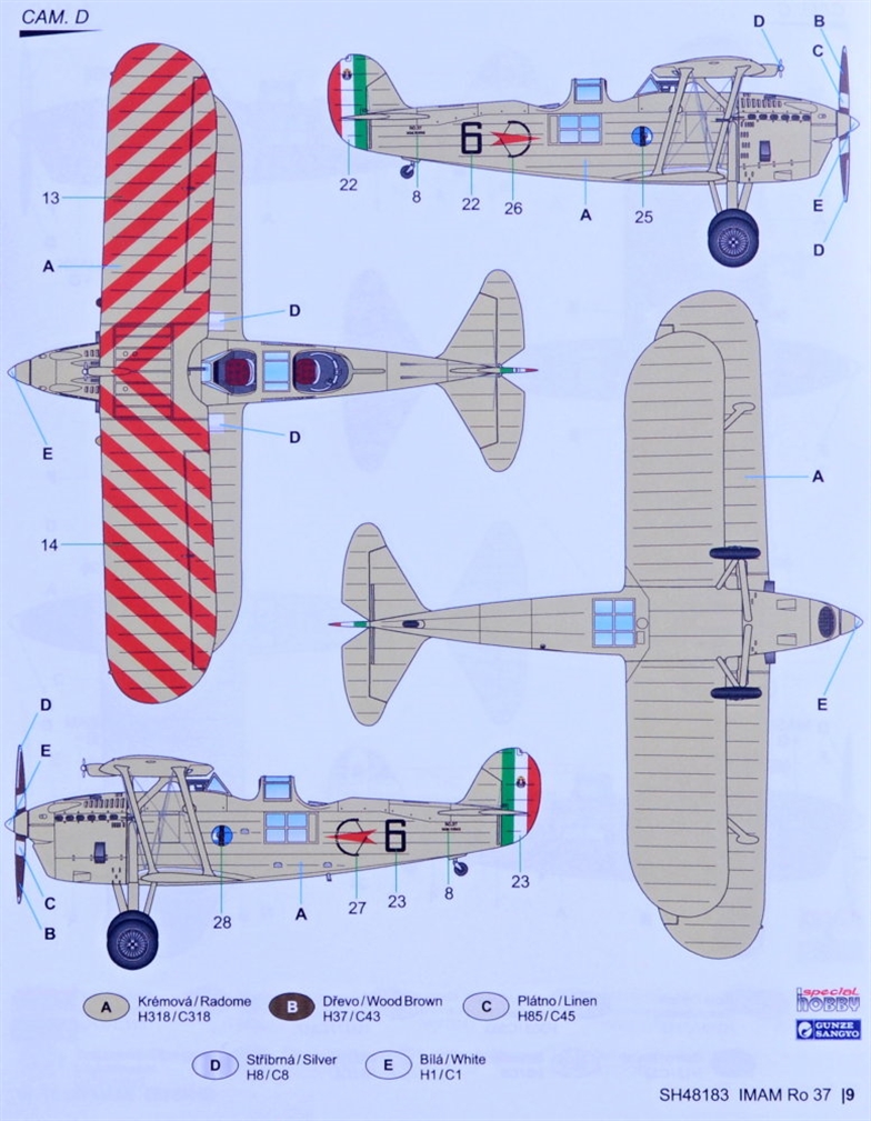 Special Hobby - 1/48 IMAM (Romeo) Ro.37 A30 engine In the early 1930s, the Italian Regia Aeronautica operated IMAM Ro.1 (licence-built Fokker C.V) reconnaissance and observation biplanes. The military were quite happy with the type, however when IMAM offered a new biplane type designed by Giovanni Galasso, the decision was taken to acquire this new aircraft. Following the prototype s successful test flights, the production was commenced in 1934. The Ro.37 was powered by an in-line Fiat A.30 engine. The Italian military also showed interest for a version fitted with a Piaggio P.IX radial engine. This version was known as the Ro.37bis and was produced along the inline-engined type. The Ro.37 and 37bis became the main observation and reconnaissance types of the Regia Aeronautica and were kept in service until Italy surrendered on 25 August 1943. By this time, a total of 621 machines of both versions had been produced, 325 of which were the bis version. The very first time the type saw combat action was during the Italian attack on Abyssinia (Ethiopia). They also fought in the Spanish Civil War, operated both by the Aviazione Legionaria and by the Aviación Nacional.