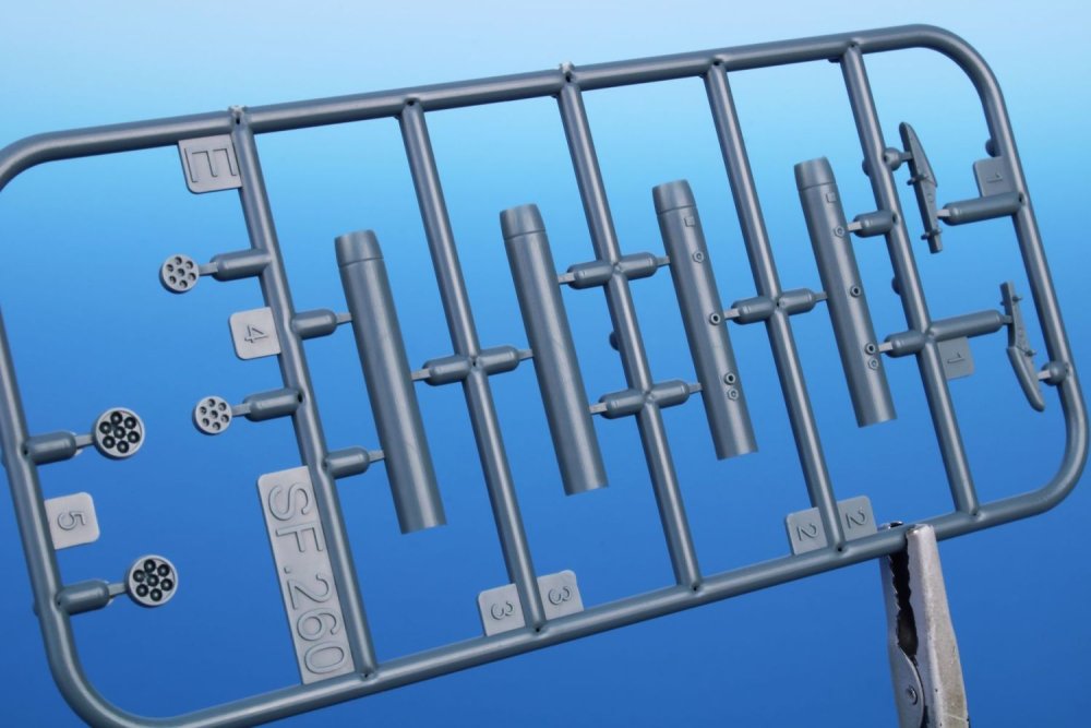 The decal sheet covers markings for anniversary Belgium and Italy airframes and the third option is a standard-looking Irish machine of the SF-260W version, which comes with underewing armament and pylons.