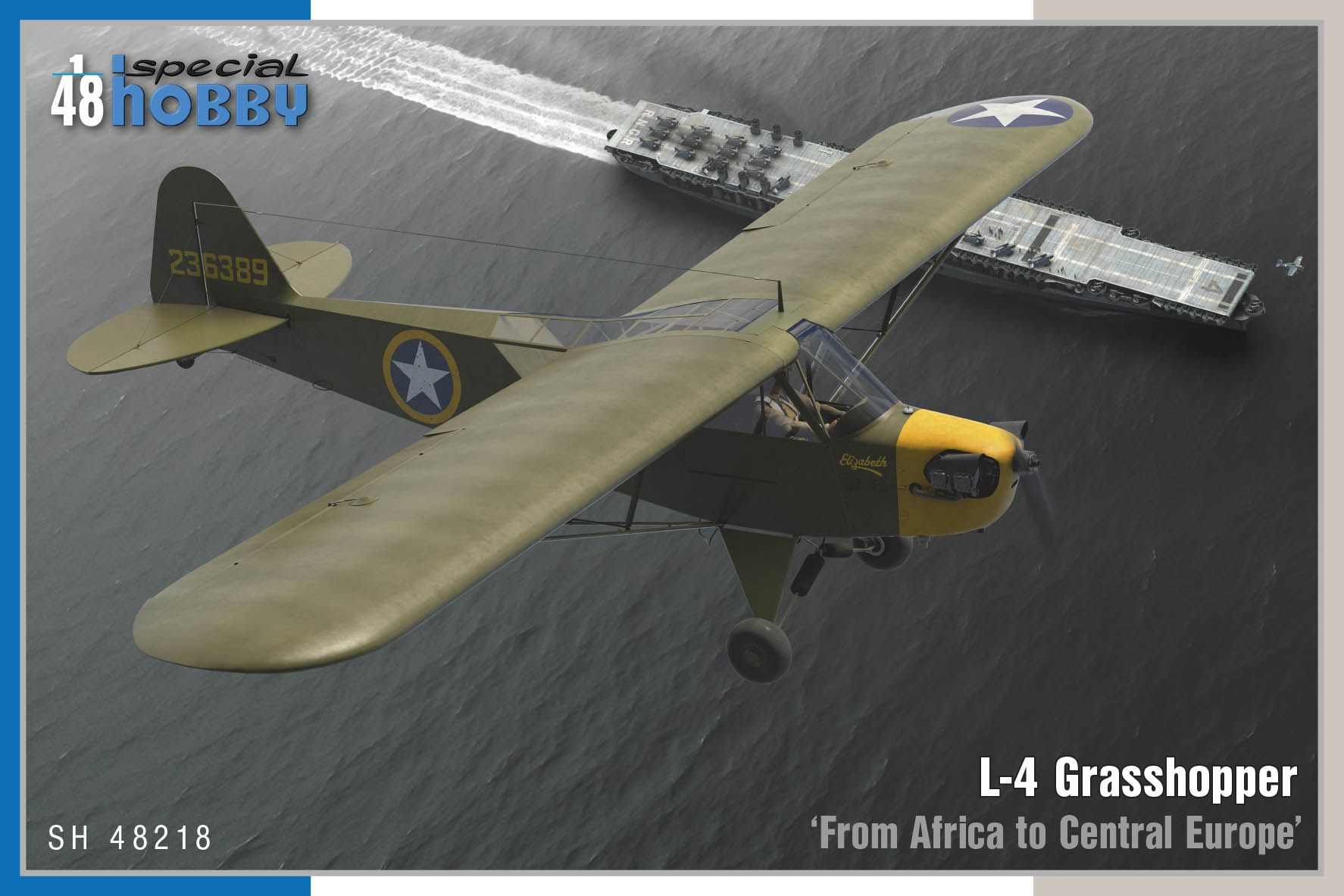 Special Hobby - 1/48 Piper L-4 Grasshopper 'From Africa to Central Europe. It quite soon became clear to the US military, as well as the British RAF, that the rather large and complicated types such as the O-47 or Lysander which had been designed in the pre-war days for army co-operation, close support, artillery observation and liaison roles were in fact ill-suited for the real operations. Lighter types with the ability of very short take offs and landings proved much more successful. And arguably the most famous of all types of this category is the L-4 Grasshopper, developed from the originaly civil J-3 Cub which did really well during US.Army pre-war excercises.