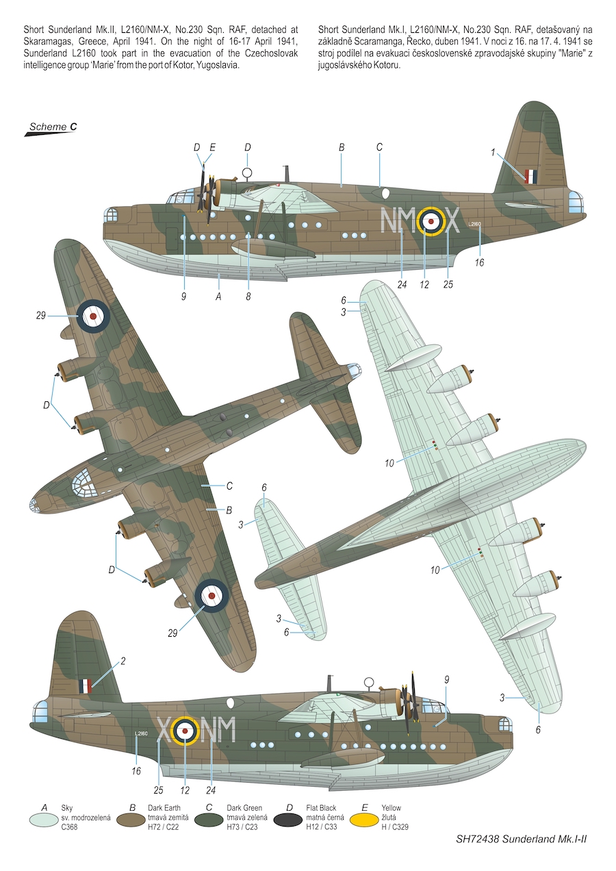 Special Hobby - 1/72 Short Sunderland Mk.I/II 'Flying Porcupine' The Sunderland is arguably one of the most famous and most well known flying boats in the history of aviation. Its initial version, the Mk.I was introduced to service before the outbreak of the war while the Mk.II version was the first Sunderland variety to start serving with the British military in the war years. Both these versions differed from the later ones by having sharp-shaped hull step and also featured twin dorsal fuselage gunner positions. Only the latest batches of the Mk.II featured the single dorsal gun turret so very much typical for Mk.III and later airframes. The very long range and heavy armament made the Sunderland feared adversary and a very successful Nazi-submarine hunter which was very much capable of defending itself against the long range Luftwaffe fighter aircraft.