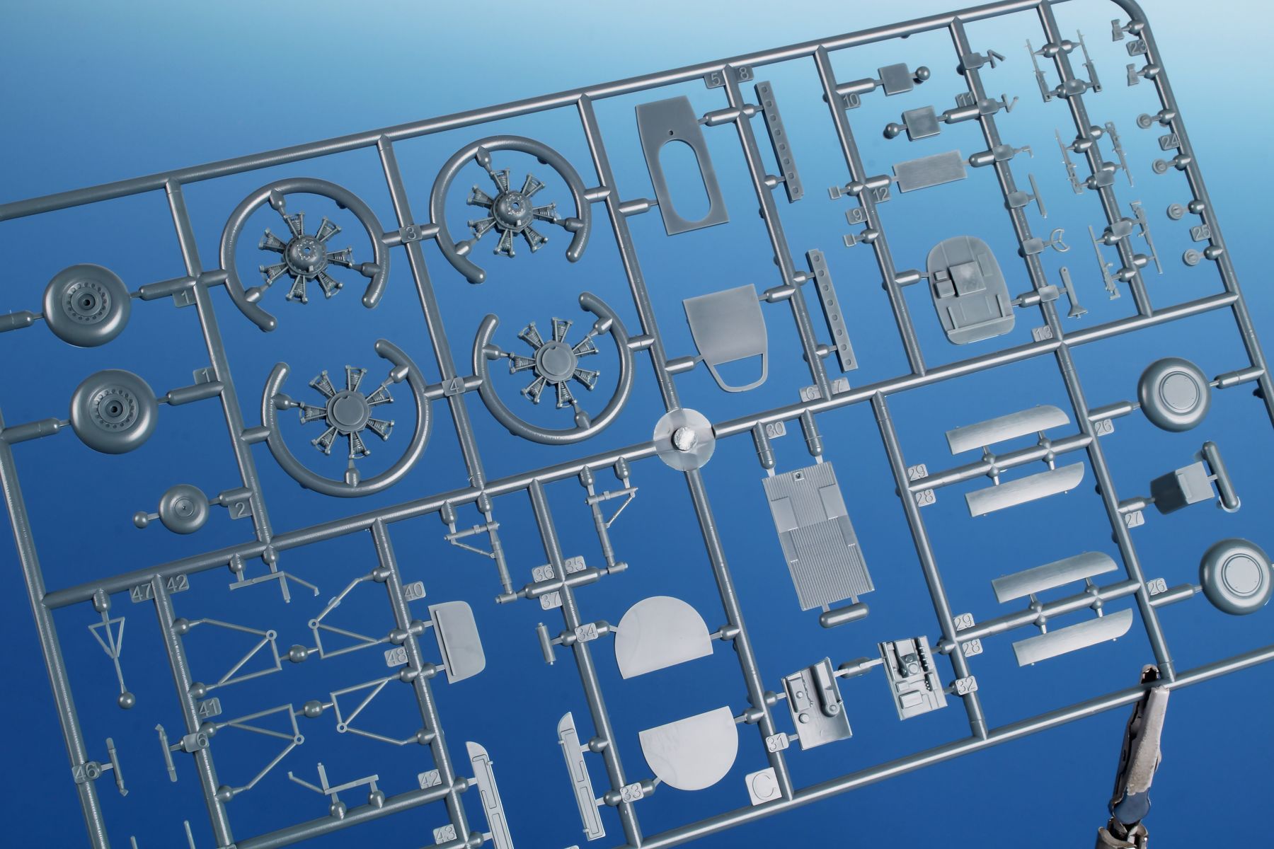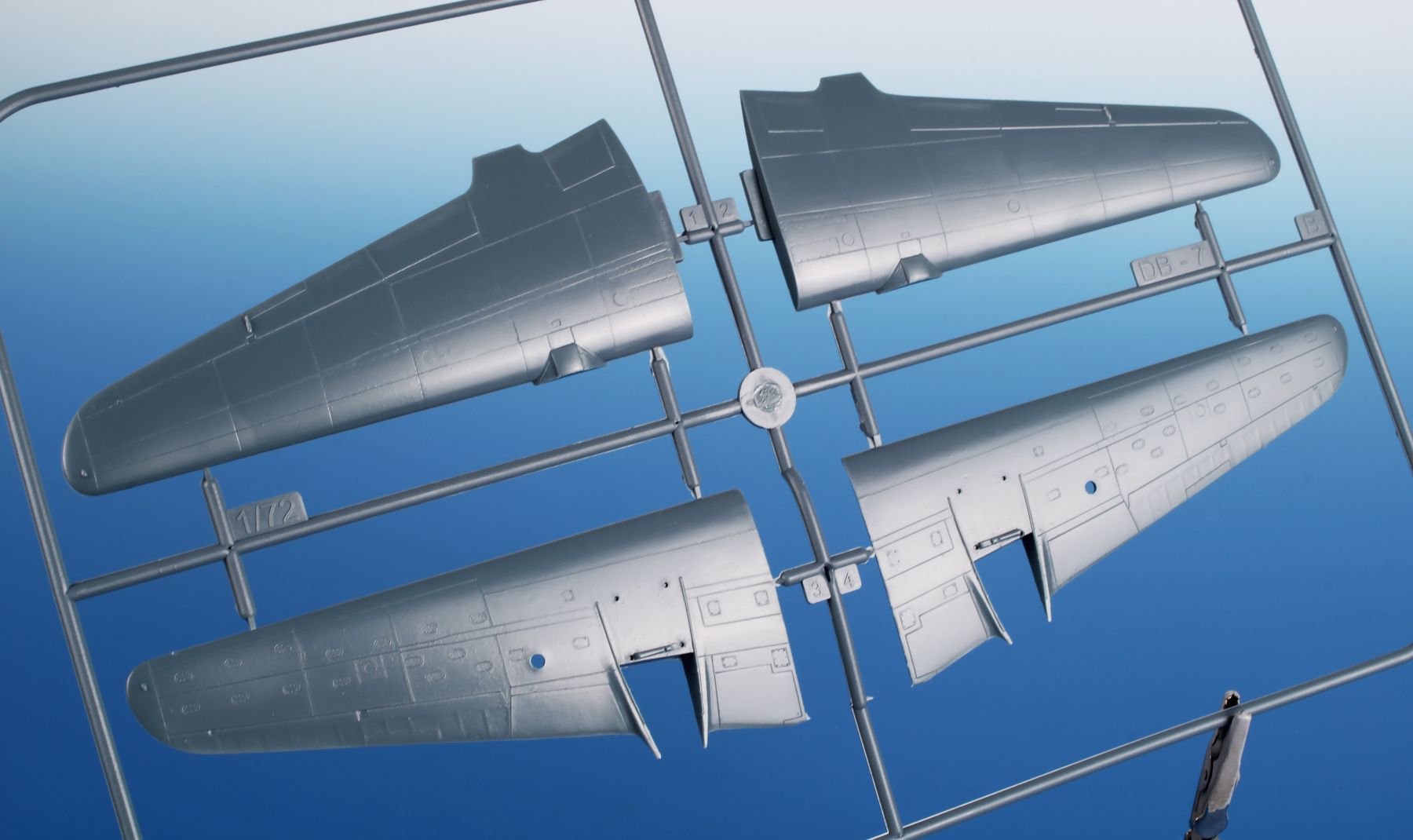 Our DB-7 Havoc Mk.I 'Intruders' kit set offers three all-black painted Intruder machines fitted with night exhausts and one bomber machine in a special test colour scheme. These machines were used by a couple of British ace pilots to achieve their first victories and were also used by Polish crews. There is one important thing associated with the Havoc exhausts-and that we learned about only after finishing the kit moulding tools. All the reference materials and scale drawings that we had, including those published in 2024, show engine exhaust only on the outboard side of the engine nacelles. While researching the camouflage schemes, it became clear that it is one of the long time repeated errors as the DB-7/Havoc Mk.I airframes did have the exhausts stacks on either side of the nacelles, ie on the outboard as well as on the inboard side. And so, our latest kit contains two pairs of night exhausts as well as two pairs of standard ones and also correction parts for the cowling flaps. The future release kits will already have the nacelle / exhaust area corrected.