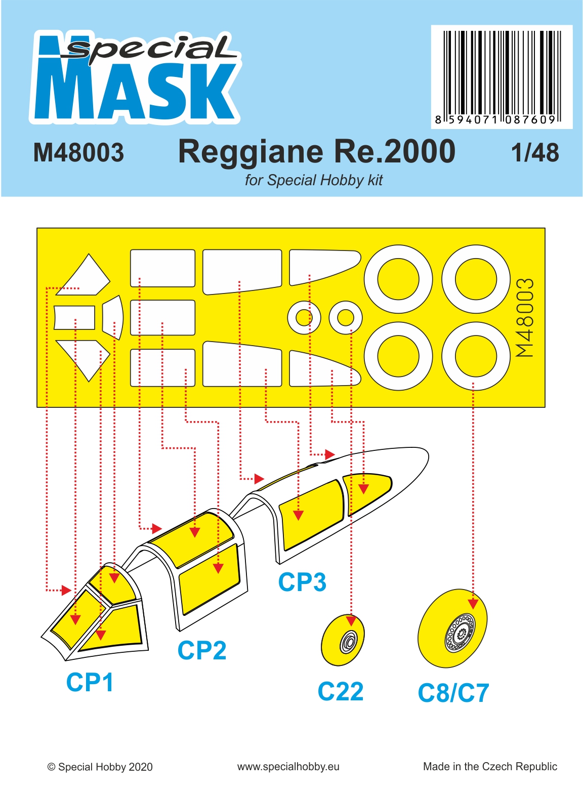 Special Hobby - 1/48 Reggiane Re.2002 Mask (for Special Hobby kits) Pre-cut spray masks for the canopy and wheels of Special Hobby Reggiane Re 2000. Instrument panel decal is also offered here, which was not included on the decal sheet of SH48208.