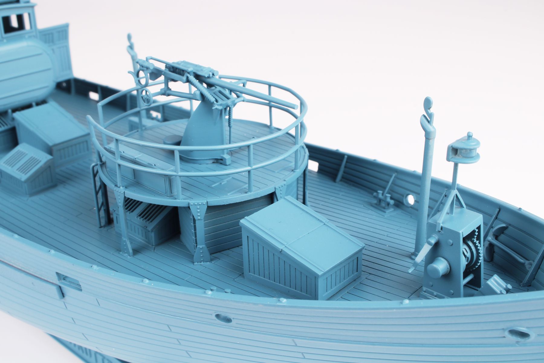 Special Navy - 1/72 Kfk Kriegsfischkutter During World War II, the German armed forces occupied a huge part of the European mainland. This included the coast from northern Norway to the coast of the Peloponnese and the Black Sea coast in the occupied USSR. This entire coast had to be guarded and defended. The capacity of German patrol vessels, including the captured ones, was not enough for this task. Therefore, based on the requirements of the OKM, the Kriegsfischkutter patrol boat, abbreviated as KFK, was developed. Because the need for these ships was enormous, large-scale production began in both German shipyards and shipyards in occupied Europe. 42 shipyards in seven countries were involved. It was the largest naval project of the Third Reich. Over 1,000 ships were ordered, and 612 were delivered by the end of the war. KFKs were assigned to many Marinegruppenkommando along the entire European coast. Within these commands, they were assigned to the relevant flotillas. They were first deployed in 1943 and fought intensively on all European seas until the end of the war. 554 ships out of a total of 612 built were used in combat and 135 of them were sunk in combat. A large number of KFKs were captured at the end of the war and were used at least briefly in many military navies. After the war, KFKs were also used in Germany during the dangerous mine clearance of the Baltic and North Sea.