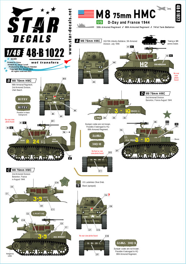 Star Decals - 1/48 US M8 Hmc 75mm Howitzer.