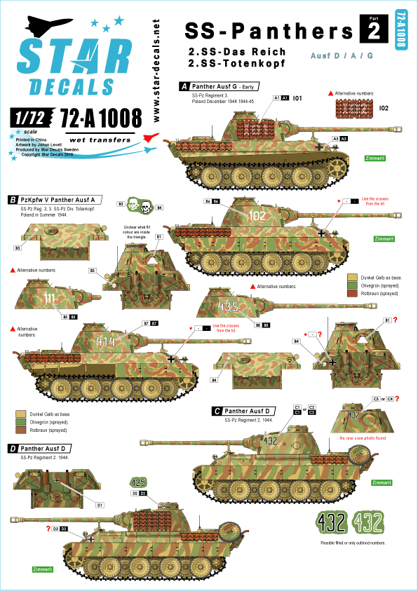 Star Decals - 1/72 SS-Panthers #2. 2.SS-Das Reich and 3.SS-Totenkopf.
