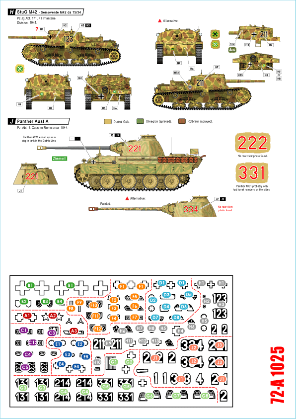 Panther Ausf.A, Pz-Jäger Nashorn, StuG M42 Semovente M42 da 75/18 and 75/34.