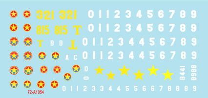 Star Decals - 1/72 Vietnam Part 4. Nva North Vietnamese T-54B markings. (Soviet)
