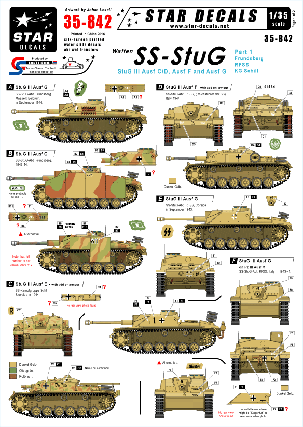 Star Decals - 1/35 Waffen-SS StuG N.1 StuG III Ausf.C Ausf.D, Ausf.F and Ausf.G Frundsberg, RFSS and KG Schill.