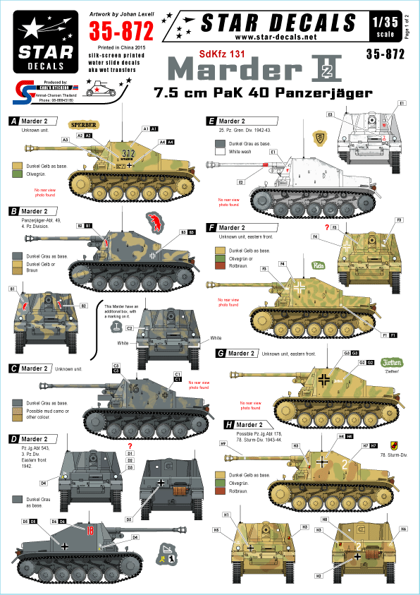 Star Decals - 1/35 Panzerjager Marder II Ausf D - 7.62cm PaK 36 SdKfz 132 on the Eastern front, 1942-44.