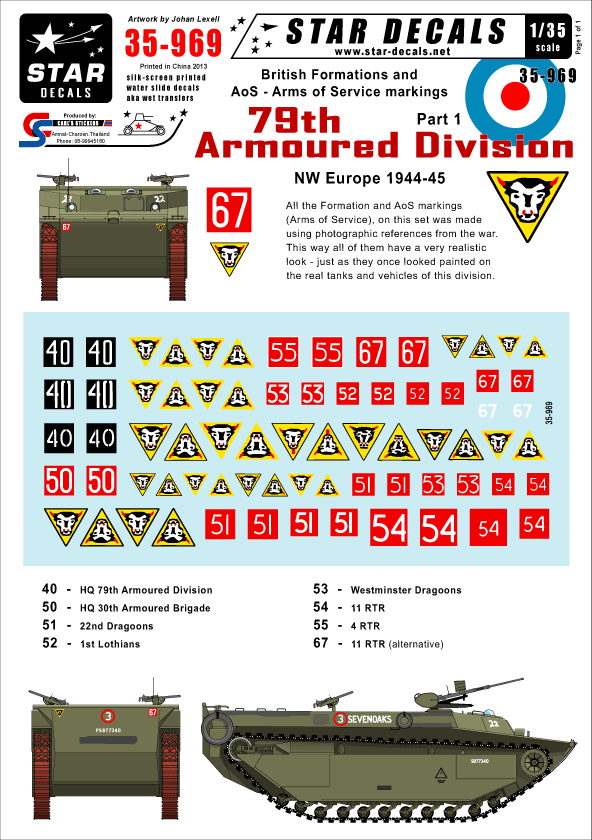 Star Decals - 1/35 British 79th Armoured Division NW Europe #1. Generic Formations and AoS markings