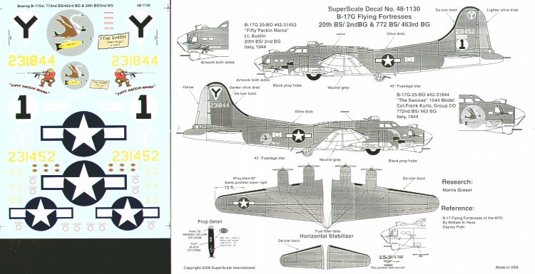Microscale - 1/48 Boeing B-17G Flying Fortress (2) 42-31452 20 BS/2 Bg Lt Austin `Fifty Packin Mama', 42-31844 772 BS/463 Bg Col Frank Kurtz `The Swooze'. Both Italy 1944,