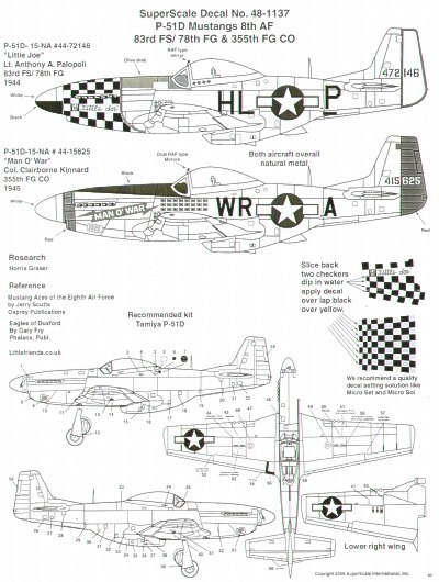 Microscale - 1/48 North-American P-51D Mustang (2) 44-72146 `Little Joe' 83rd FS/78th Fg 1944, 44-15625 `Man O'War' 355th Fg Co 1945