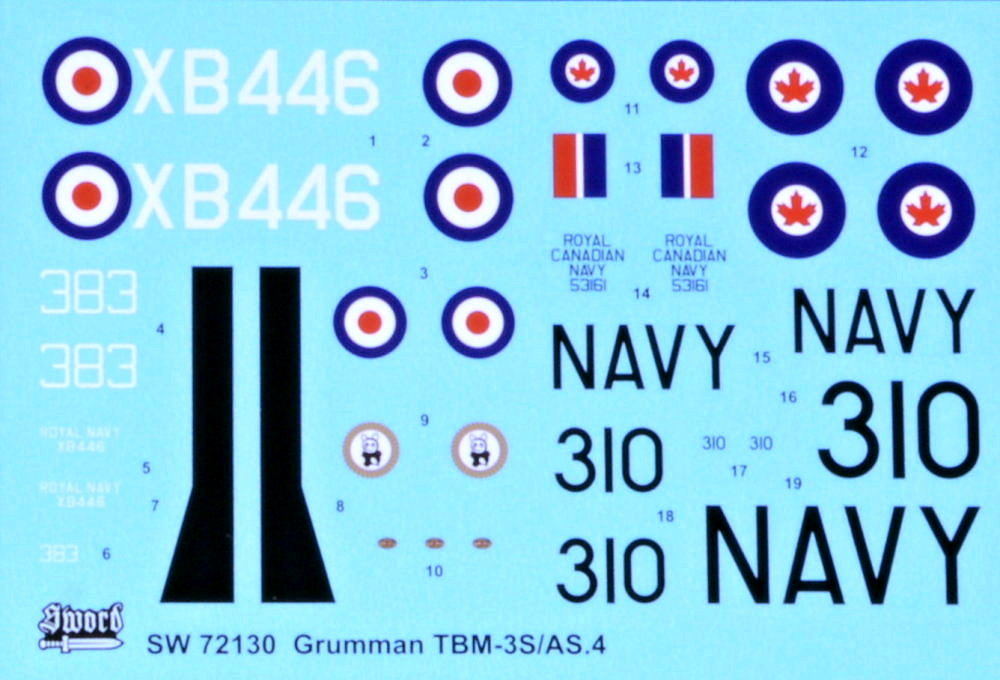 Sword - 1/72 Grumman TBM-3S Avenger AS.4 (2 markings FAA, RCN)