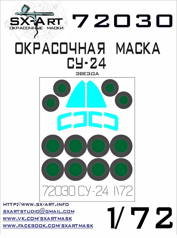 SX-Art - 1/72 Sukhoi Su-24 canopy and wheel paint mask (for Zvezda kits)