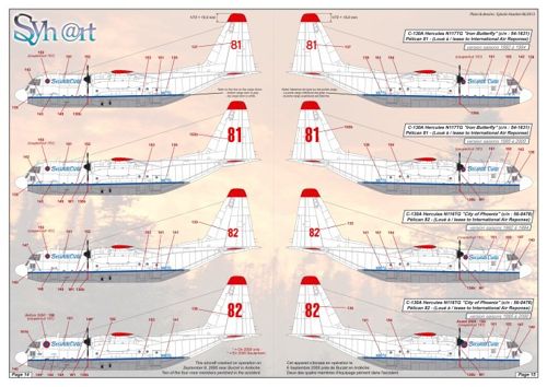 Also included in this set, the decals of C-130A Hercules 81 & 82 wearing French Scurit Civile. Registered N117TG & N116TG, rent to the American firm International Air Reponse, they where used has heavy fire bombers, during seasons 1992 to 2000 (except 1997), to replace the DC-6s retired on 1990.