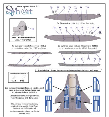 (This set of decals contains the decoration decals for three aircrafts, but a single set of safety markings ('stencils'). You can purchase two additional sets of stencils (ref : Syhart 915S) to model all the three proposed aircrafts.