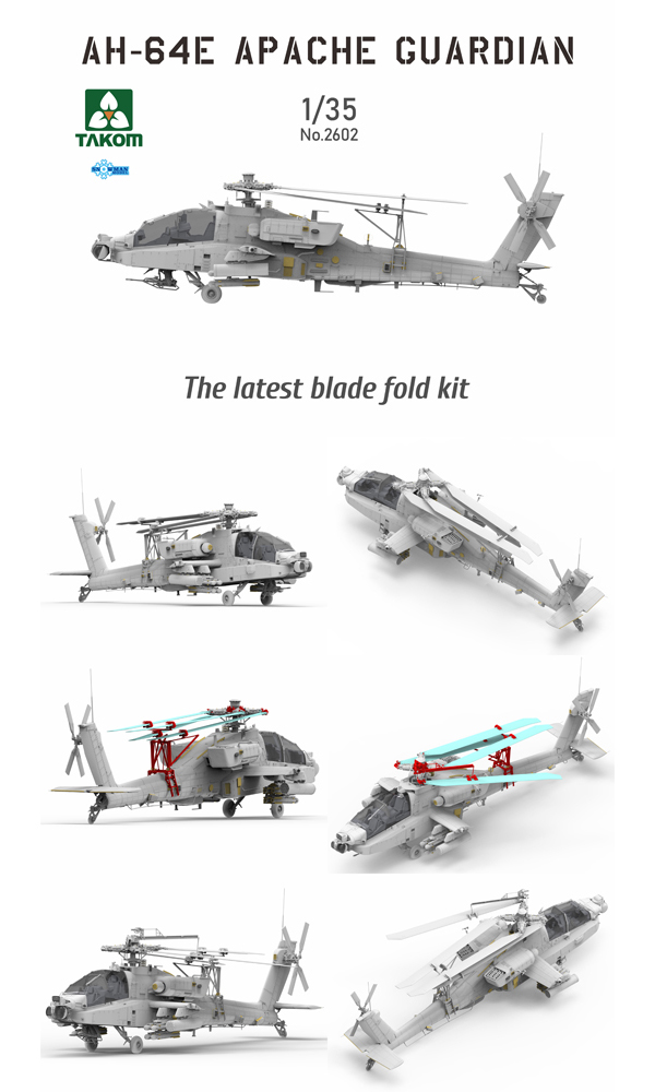 Takom - 1/35 Boeing AH-64E Apache Guardian Attack Helicopter. Advanced variant of the American close combat attack helicopter introduced by the US Army from 2013.