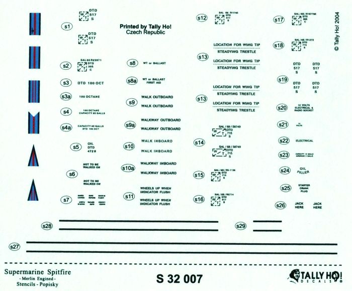 TALLY-HO - 1/32 S.Spitfire-Merlin Engined Stencils