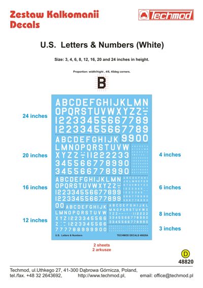 Techmod - 1/48 White U.S. Letters & Numbers 3" 4" 6" 8" 12" 16" 20" and 24" inches in height