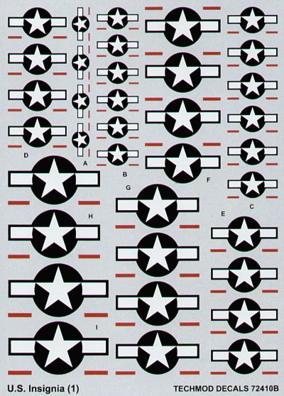 Techmod - 1/72 US National Insignia 1943 to current. 9 sizes, 20" , 25" , 30" , 35" , 40" , 45" , 50" 55" 60" . Optional red bars.