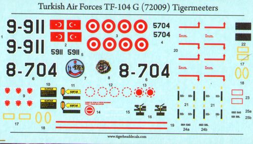 Tigerhead Decals - 1/72 Scale Turkish Air Forces Lockheed TF-104G Starfighter Tigermeeters