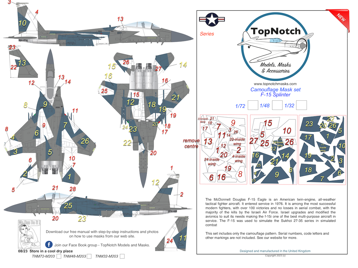 Top Notch - 1/32 McDonnell F-15C Eagle Eagle Splinter scheme Camouflage pattern paint mask for