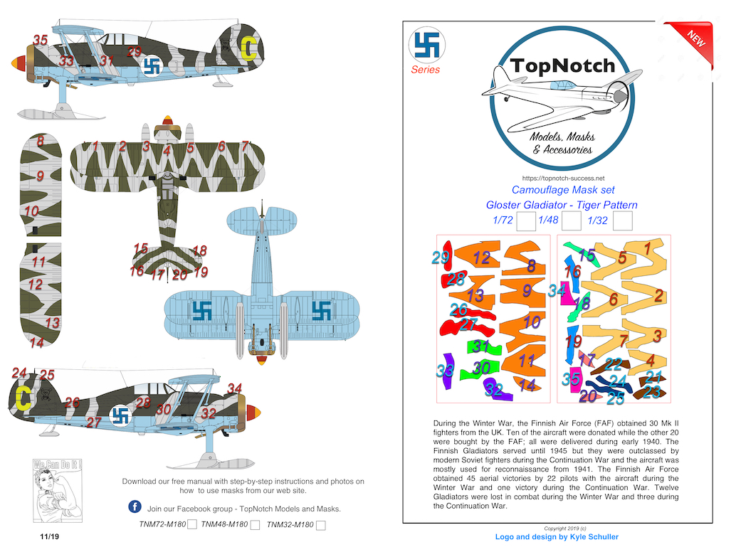 Top Notch - 1/48 Gloster Gladiator Mk.I/Mk.II Tiger (Finnish) pattern (for Eduard, Merit and Roden kits)