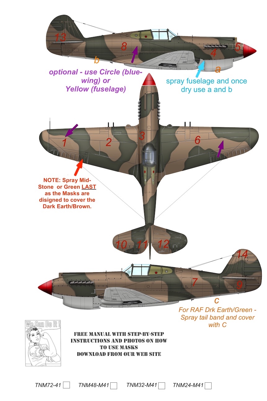 1/72 RAF Tomahawk Mk.IIB Camouflage pattern paint Mask