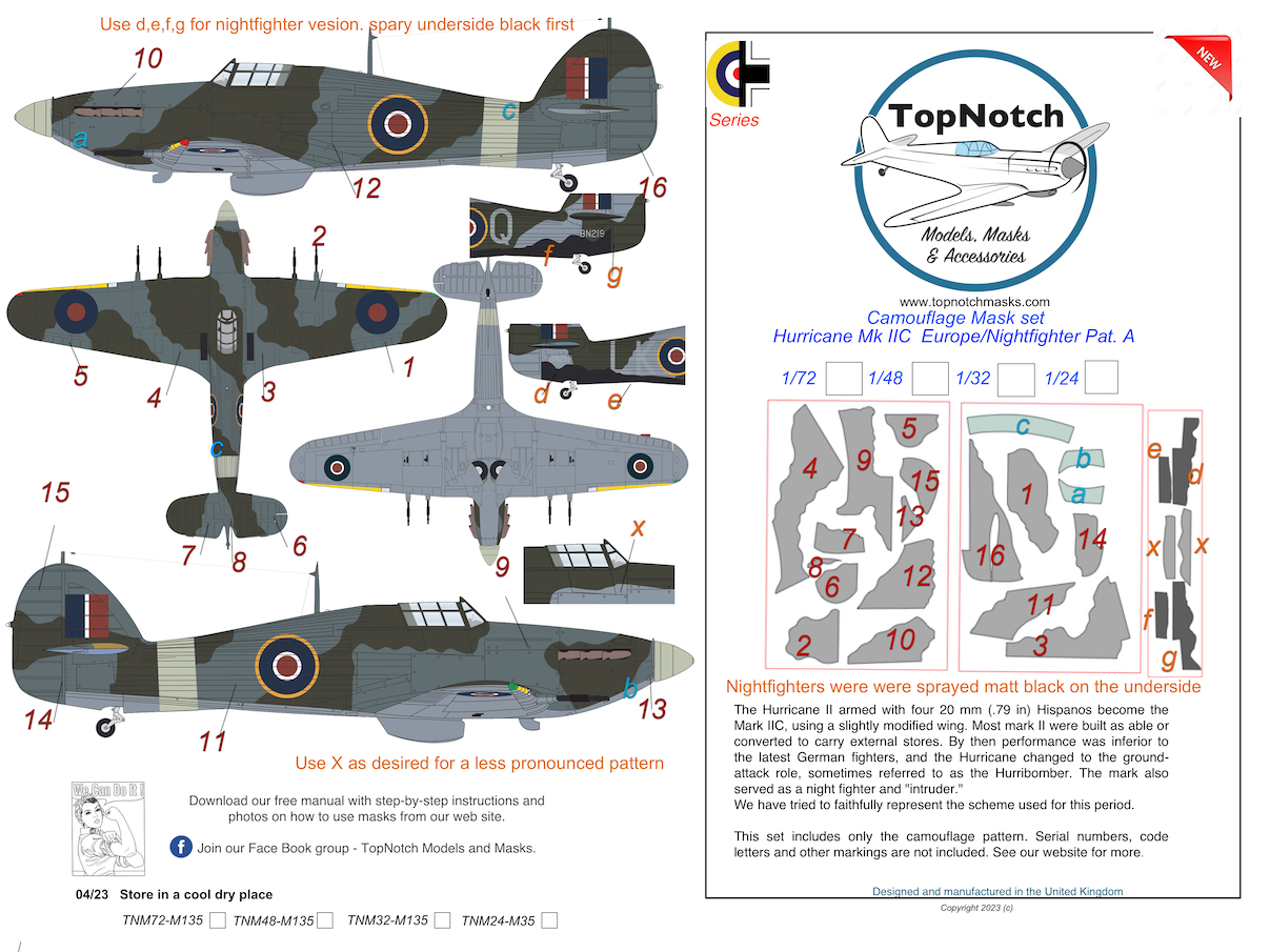 Top Notch - 1/72 Hawker Hurricane Mk.IIC/Nightfighter Europe Pattern A Camouflage pattern paint masks