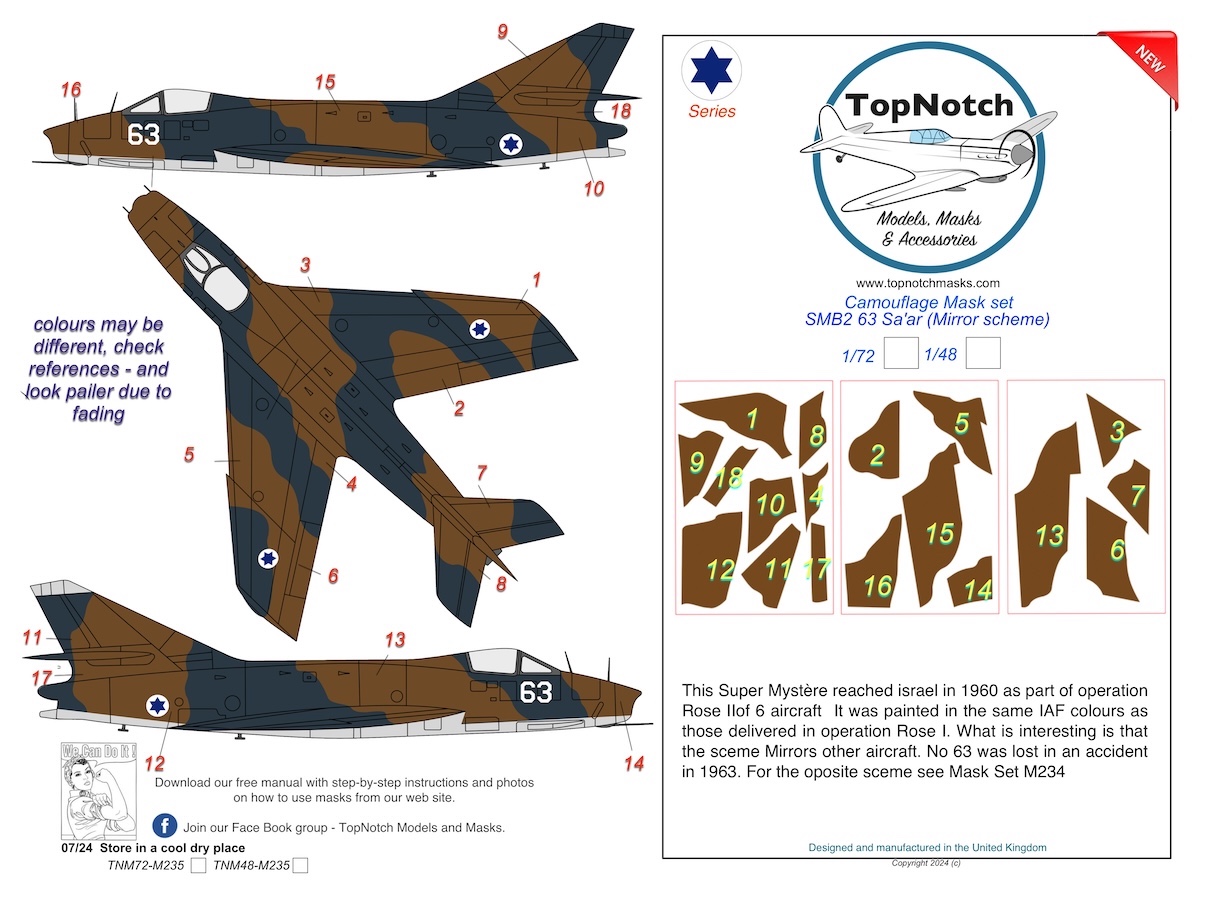 Top Notch - 1/72 Dassault Super Mystere SMB2 63 Sa'ar- Mirror camouflage pattern paint masks