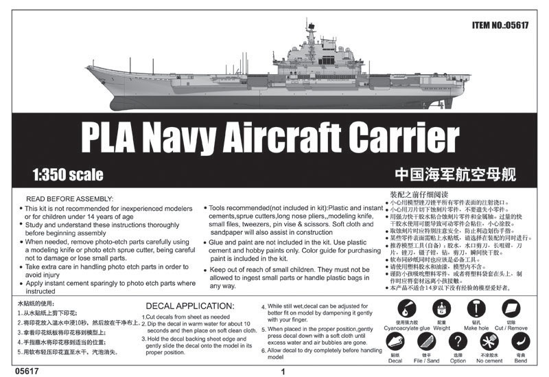 1/350 PLA Navy aircraft carrier Shi Lang (ex Varyag)