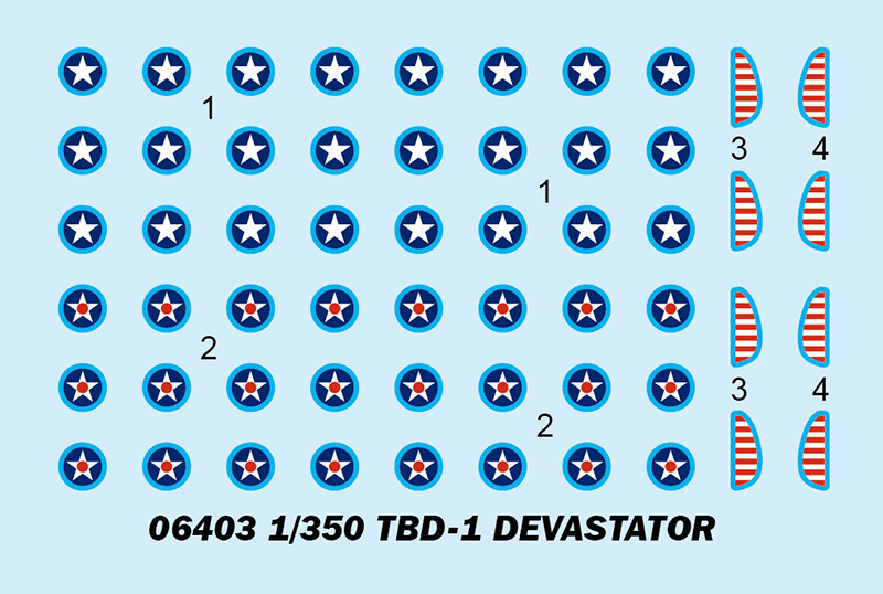 Trumpeter - 1/350 Douglas TBD-1 Devastator (qty 4 pre-painted) 2 with folded wings and 2 with straight wings