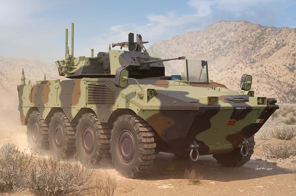 The vehicle has been modified to provide greater anti-tank blast protection for the crew. The interior layout of the Freccia has been optimised to carry a crew of eight soldiers, with two men in the turret and a driver.