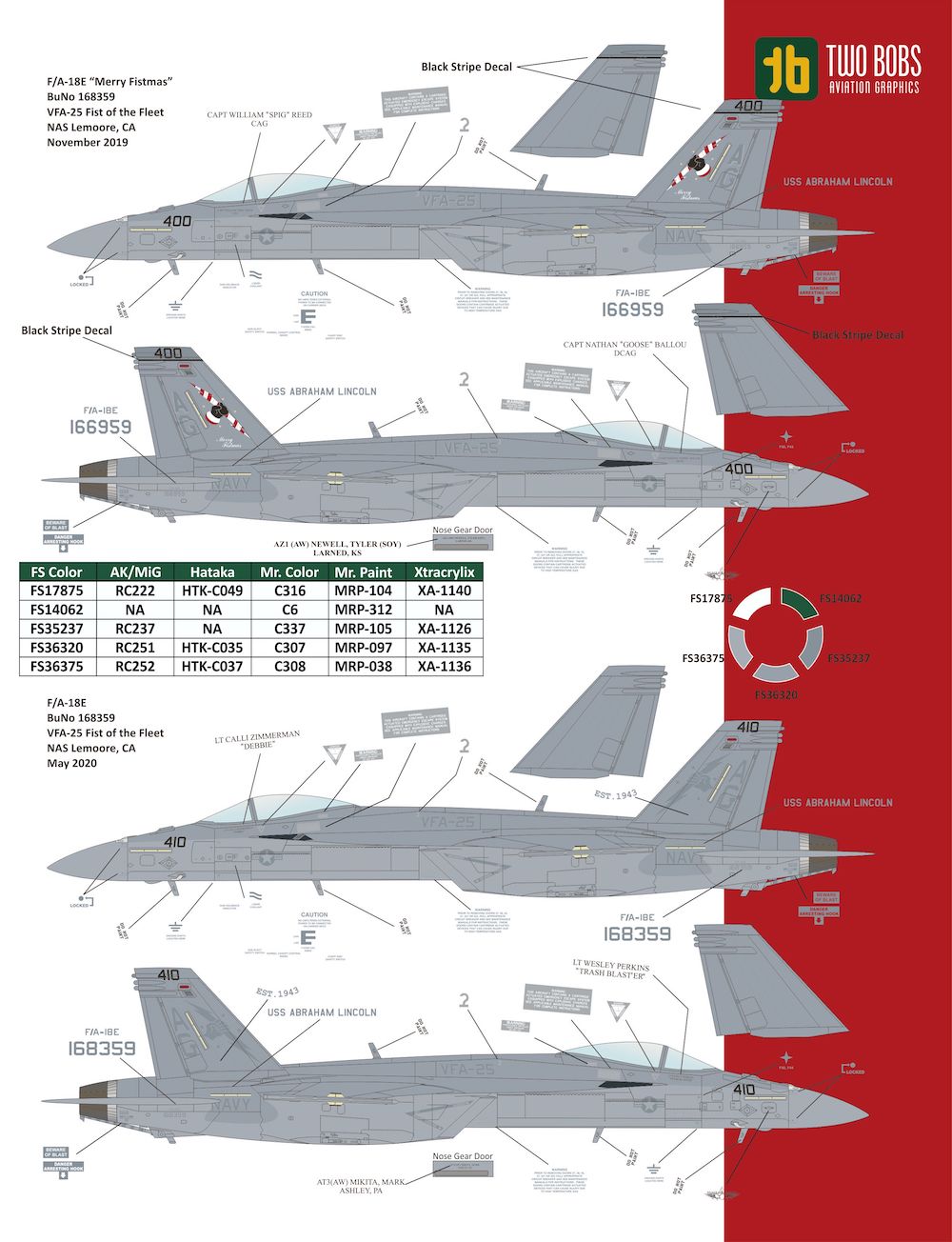 Two Bobs - 1/48 Boeing F/A-18E VFA-25 Fist of the Fleet. VFA-25 Fist of the Fleet has a long and distinguished naval aviation history that started in 1943. In that time they have flown the Tbf Avenger, the SB2C Helldiver, the A-1 Skyraider, the A-7 Corsair and the F/A-18C Hornet.