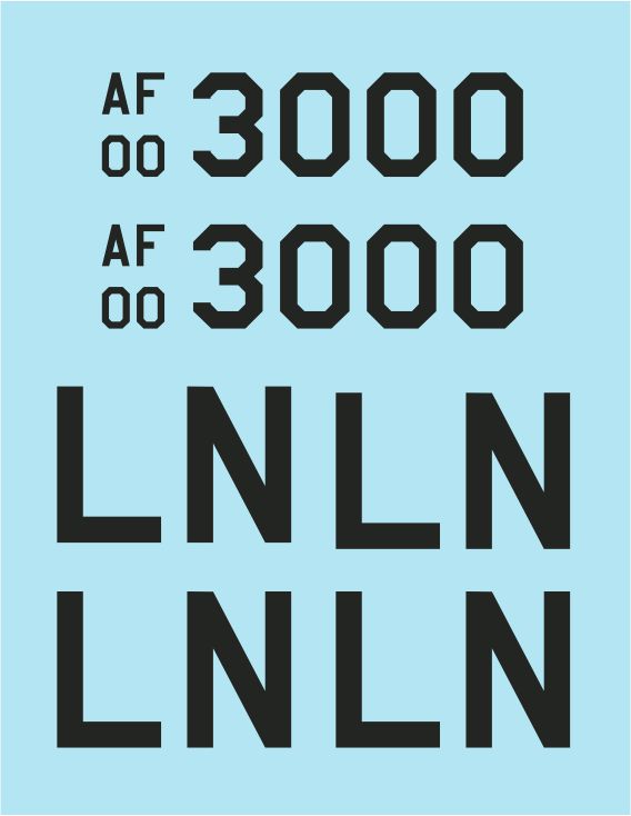 Twelve AC, each with unique nose art are represented on this sheet with enough stencil markings for two complete jets.