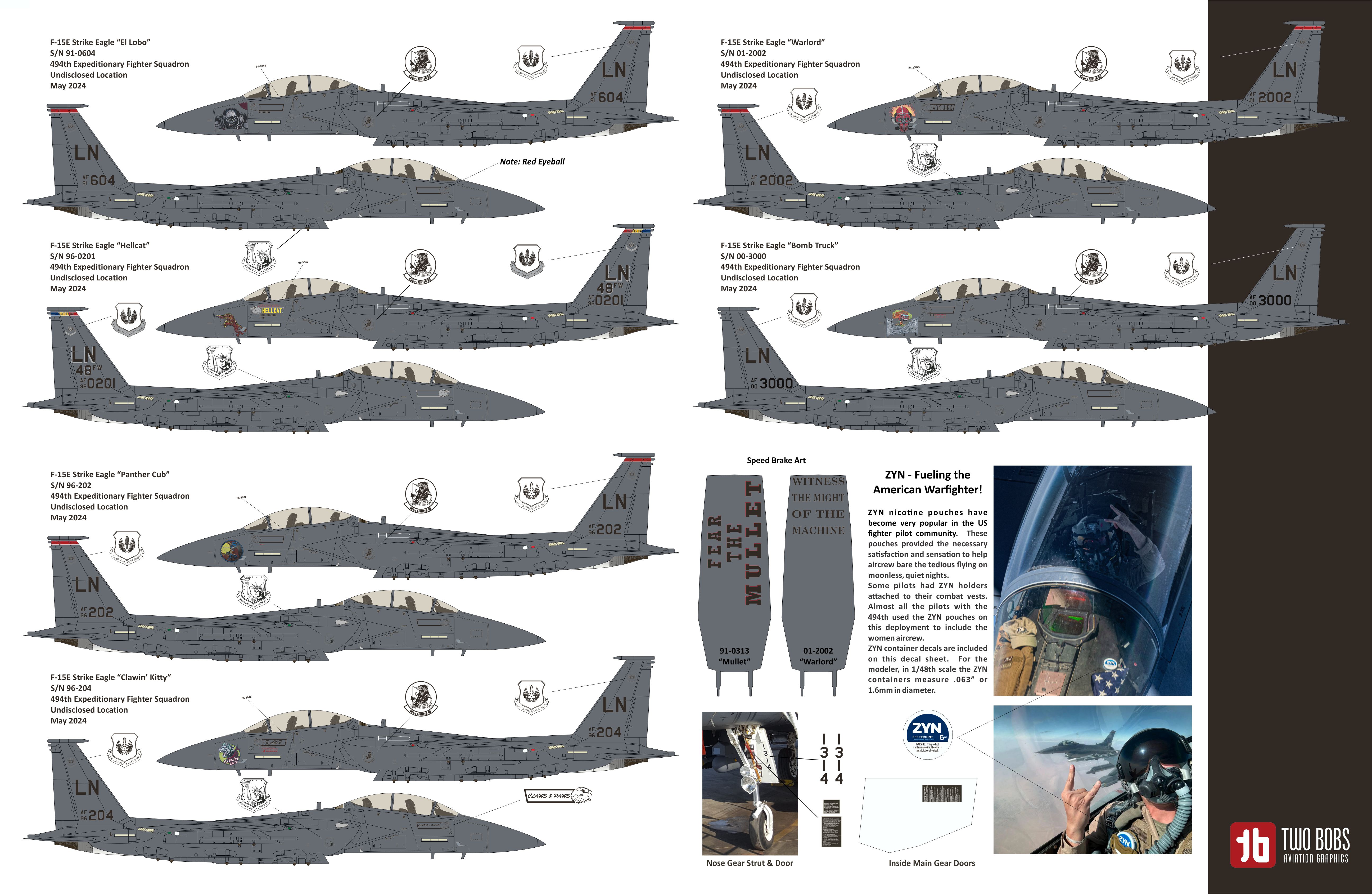 Following in the footsteps of their previous Centcom deployments, the Black Panthers deployed back to the Centcom Aor in 2023, and decorated their aircraft with an amazing lineup of nose art. While deployed, the Black Panthers were involved in a variety of air-to-ground and air-to-air engagements, including the shootdown of over 70 Iranian drones launched at Israel on April 13, 2024.