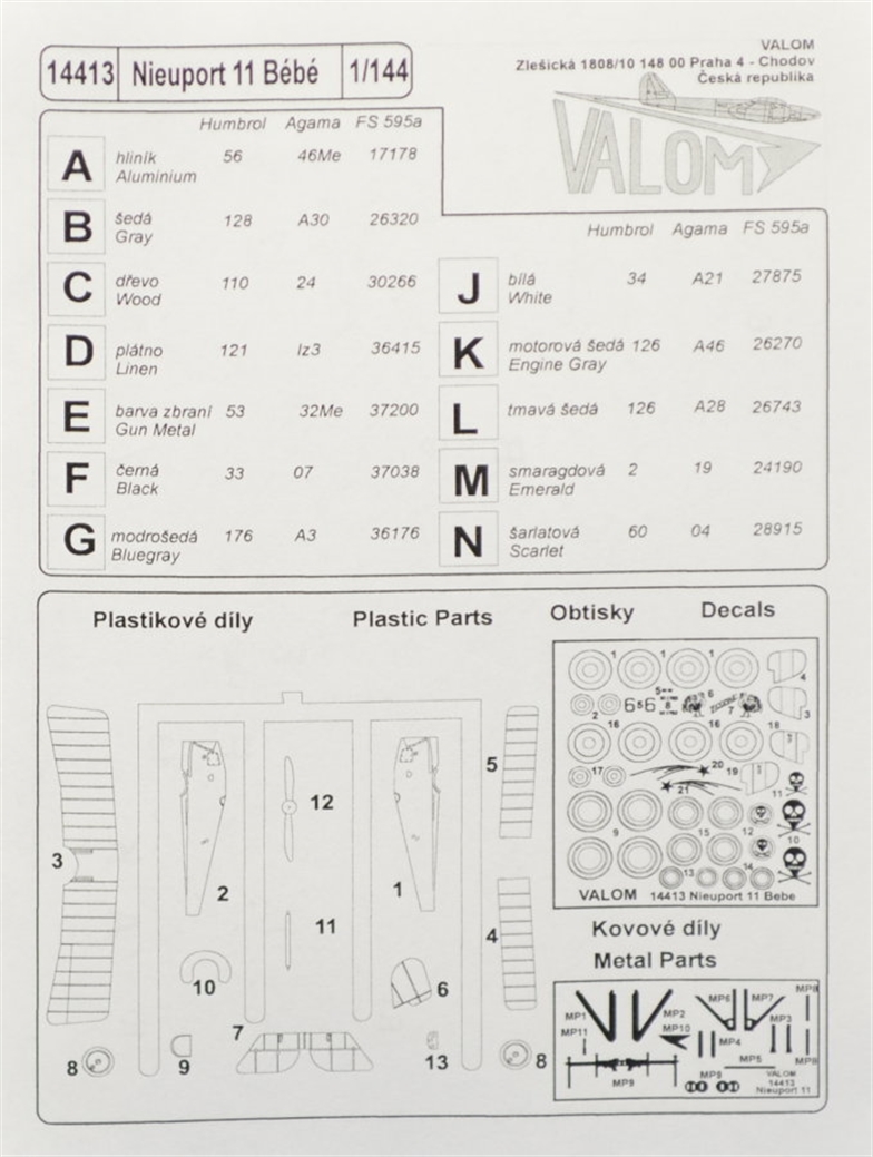 Valom - 1/144 Nieuport 11 Bebe (Dual Combo with 2 kits) tincludes two identical sprues with parts, 2 x resin engines and two frets with p/e parts.