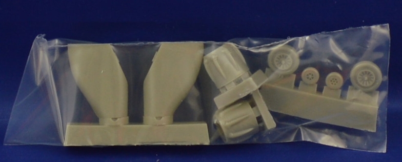 The kit includes three sprues with main parts and details, one sprue with clear parts, resin (PUR) parts and a fret with p/e parts.