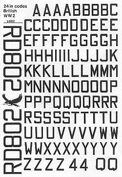 This sheet includes a variety of black 24 inch letters in 'rounded' and 'squared' styles, as used by British, Australian, Canadian, New Zealand and other air forces in World War II and later.
